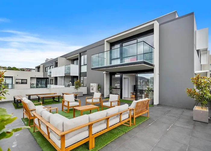 The spacious 2-bedroom Luxe City Oasis - Huge Terrace Views Parking provides swift access to various city landmarks, such as St Mary's Cathedral, located about a 5-minute stroll away. Staying in the apartment, nestled merely 9 minutes' stroll from Hobart Convict Penitentiary, guests can relax on a patio.